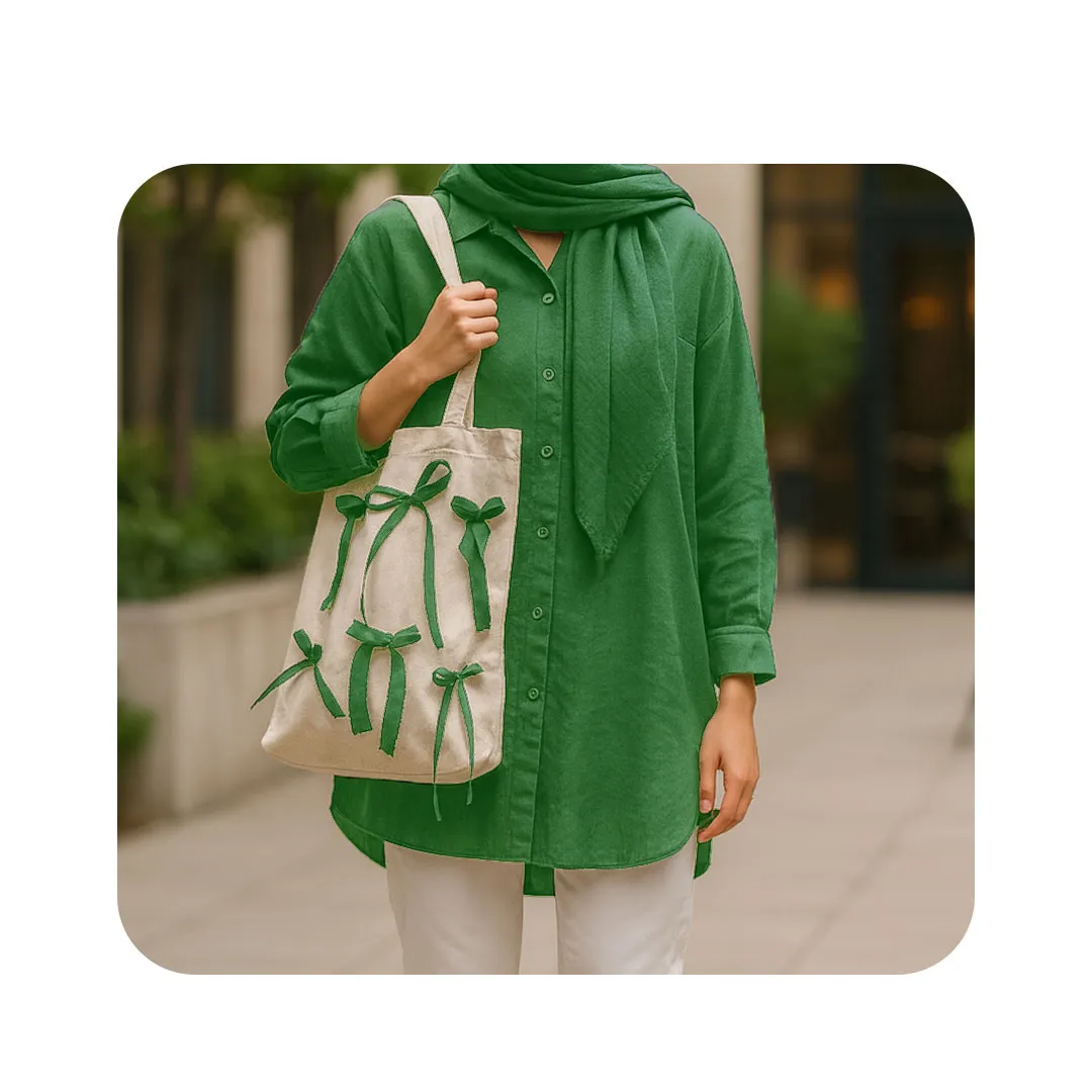 این کیف از پارچه مقاوم و بادوام تهیه شده که در برابر استفاده روزمره و شستوشو عملکرد بسیار خوبی دارد. دوخت حرفهای آن تضمین میکند که حتی با استفاده مداوم، فرم و کیفیت خود را از دست ندهد. سبکی و انعطافپذیری پارچه باعث شده توت بگ پاپیونی برای حمل وسایل روزمره، خرید، دانشگاه یا حتی سفر گزینهای عالی باشد.